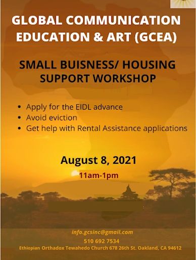 GCEA offers small business support through workshops and training programs. We support immigrants who are struggling during the pandemic by holding small business workshops where owners can learn about supplemental loans, EIDL, and laws surrounding the operation of small businesses in Alameda County. We help communities recognize that real growth over time comes from local business expansion and there are many resources available to small business owners that immigrants in the African Community are often unaware of. Our workshops bring to light these resources and help struggling small business owners take advantage of them.
